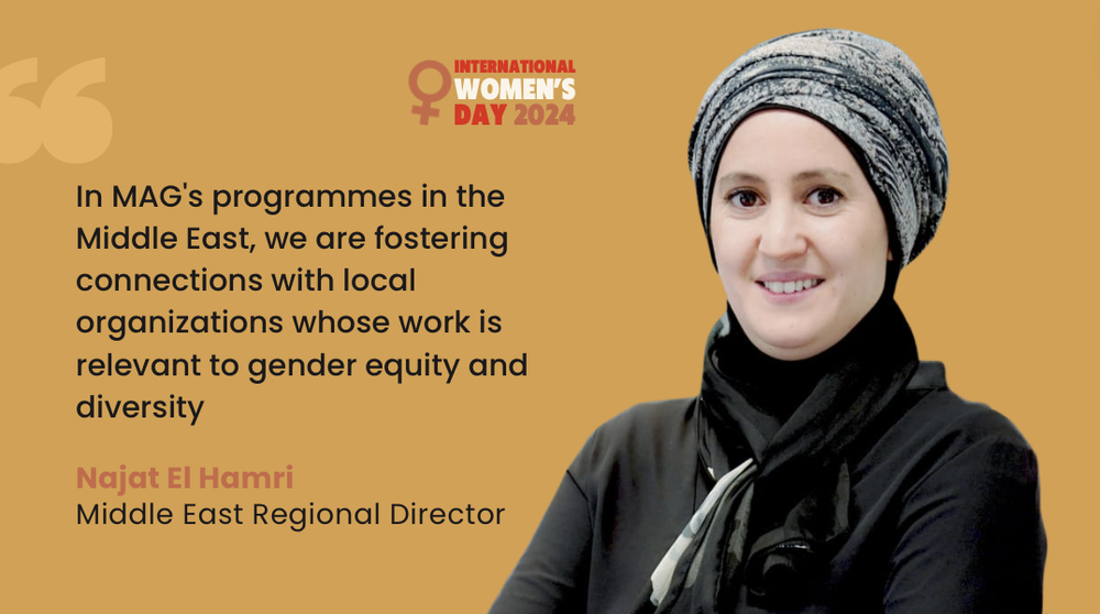 "In MAG's programmes in the Middle East, we are fostering connections with local organisations whose work is relevant to gender equity and diversity. We also encourage the exchange of knowledge between national authorities on topics relevant to gender equity. In the past MAG staff have delivered training on gender to national authorities, to support them to reflect on these important issues within their own teams."